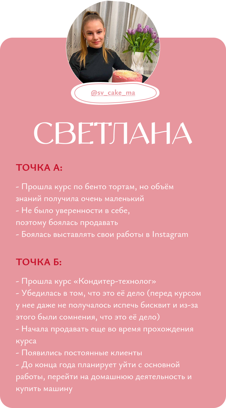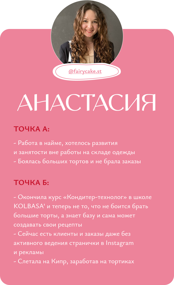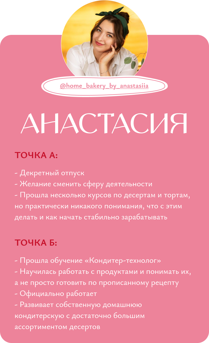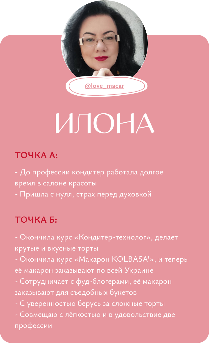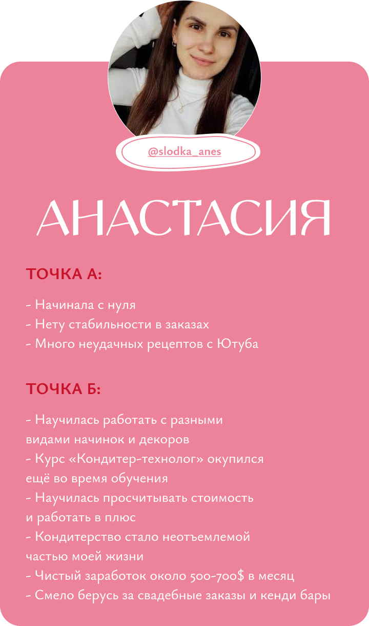 Я обучаю кондитерству с нуля, помогаю кондитерам выйти на новый уровень дохода и развития, доказываю, что