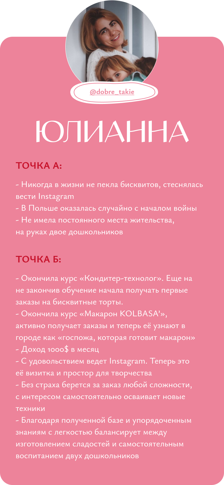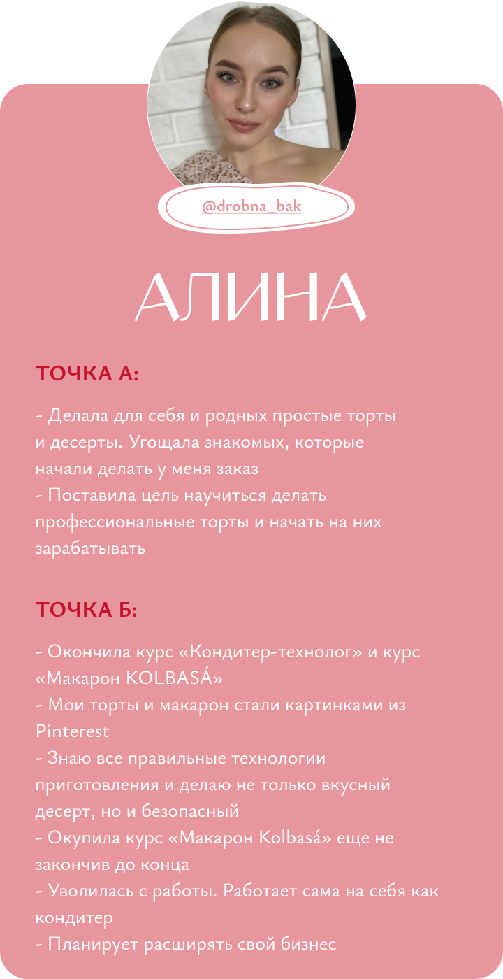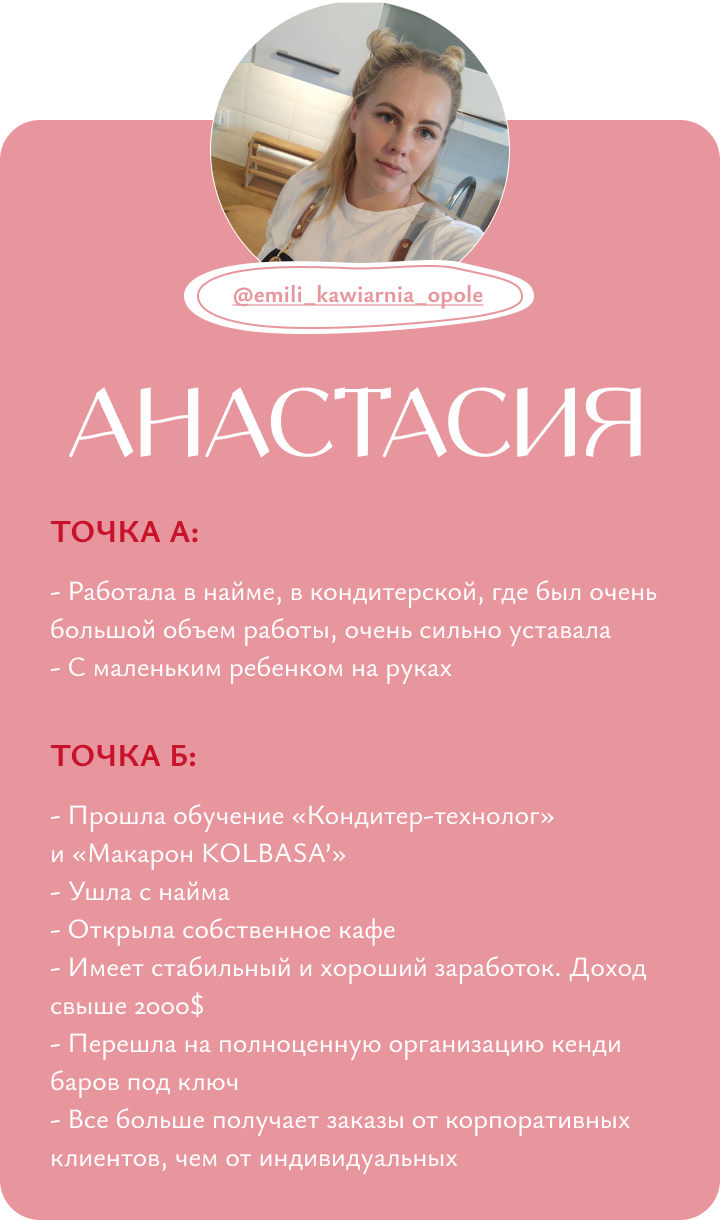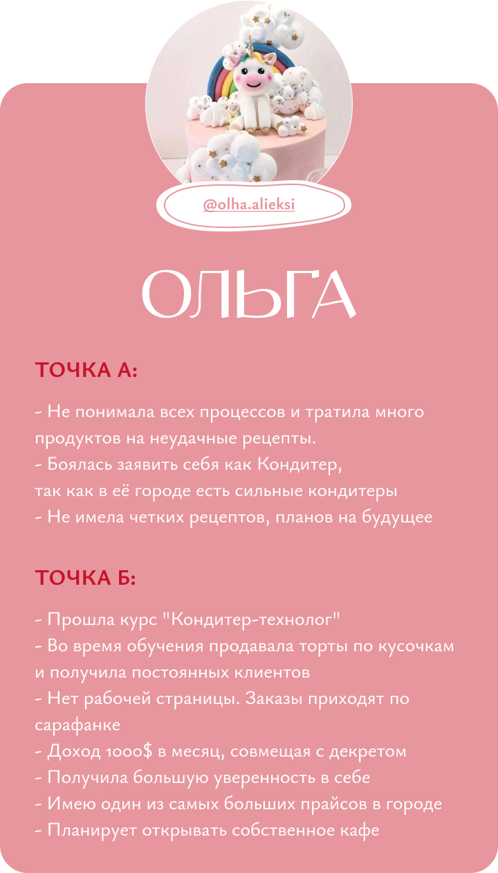 Я обучаю кондитерству с нуля, помогаю кондитерам выйти на новый уровень дохода и развития, доказываю, что